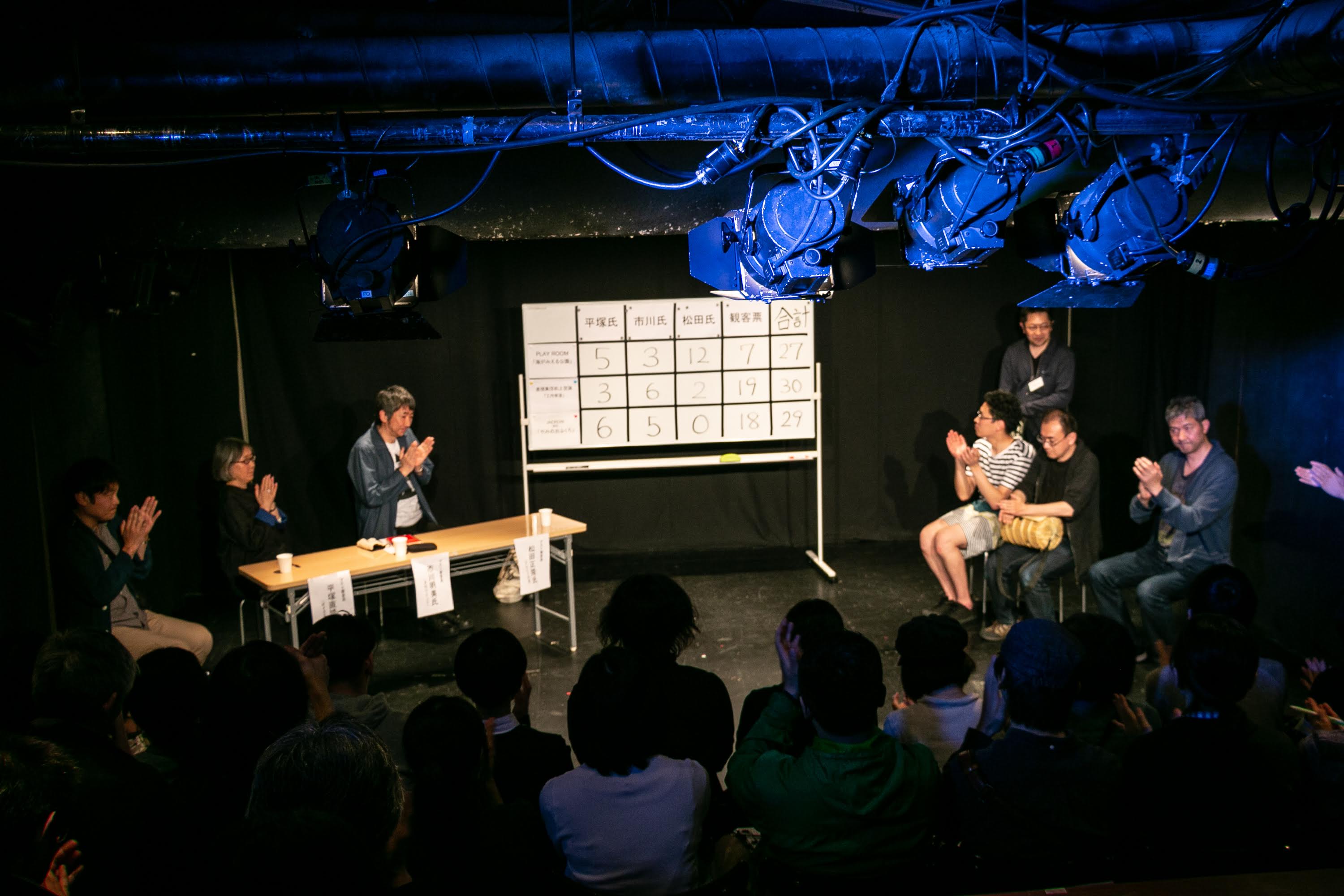 20分以内、役者3人以内のルールで作品を連続上演、観客と審査員の投票で勝敗を決める短編演劇フェスティバルです。県内外から9団体を迎え、3団体ずつの予選と決勝を行い、優勝チーム(表現集団 机上空論「工作教室」)を第4代えんとつ王として認定しました。