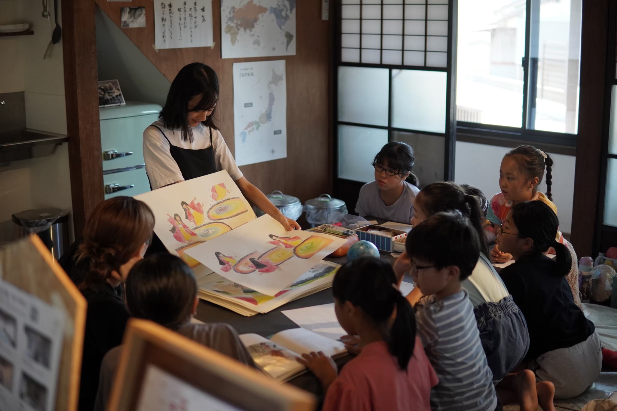 にいつ昔話を題材にするにあたり、秋葉かみしばいクラブ「青空」のみなさまのご協力をいただきました。その結果、地域の文化を繋いできた人々との交流が深まっただけでなく、インターネットでは公開されていない題材や歴史への理解が深まり、こどもたちが大人と一緒に地域の文化を探究する時間になりました。さらに、アーティストの創作作品において、地域性やオリジナリティーが増し、アーティストのインスピレーションを掻き立たせる1つの要因となりアーティストに喜んでいただくことができました。
